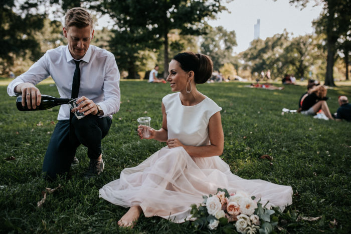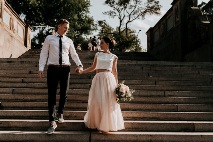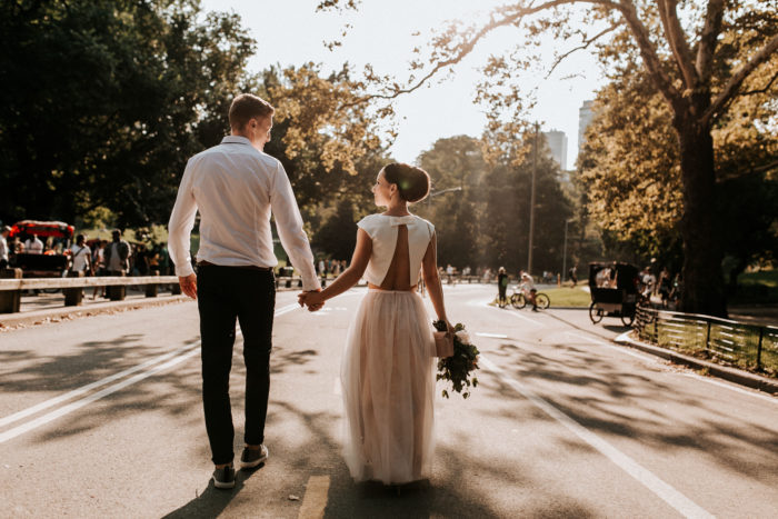 Wenige Städte beeindrucken und überwältigen so nachhaltig wie New York City. Auf ihrer Hochzeitsreise wurden Gabi und Claudius in ihren Bann gezogen und so kehrten sie sechs Jahre später wieder an diesen Ort zurück, um ihn abermals zu etwas ganz Besonderem zu machen. Eine freie Trauzeremonie im Central Park, mit seinen grünen Wipfeln vor der Skyline dieser Megastadt. Trotz der vielen Menschen, die an diesem wunderschönen Augustsonntag in den Park gekommen sind, um abzuschalten von den ewig andauernden Verkehrsströmen, von der unglaublichen Schnelllebigkeit dieser Stadt, war es so, als gäbe es außer diesen beiden Liebenden niemand anderen auf der Welt. Die Intimität dieses Tages war in der ganzen Anonymität darum herum nur noch intensiver und machte ihn so besonders und einzigartig.