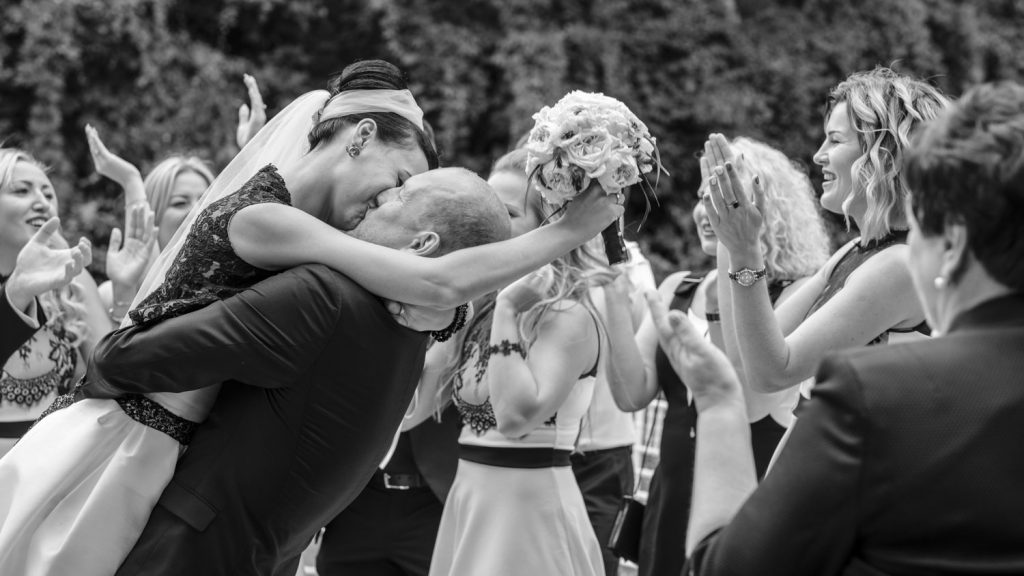 Schwarz und Weiß, eine Statement – Farbkombination, die von eher wenigen Brautpaaren gewählt wird. Erst recht, wenn dazu alles im glamourösen, aber elegant-modernen, Coco Chanel Stil gehalten wird. Vom ersten Augenblick an waren wir verzaubert, von Lada, ihren Vorstellungen und ihre Leidenschaft für diese Thematik. Selten hatten wir so viel tatkräftige Unterstützung von der Braut selbst, was die kurze Vorbereitungszeit von drei Monaten deshalb auch für uns zu etwas ganz Besonderem machte. Extravagant und selbstbewusst schreitet sie in einem weiß-schwarzen Brautkleid aus St. Petersburg den Weg zu ihrem Bräutigam, im Garten des wunderschönen Schloss Eckberg an den Dresdner Elbhängen. Und die deutsch-russische Gesellschaft ist zusammen mit uns sprachlos.