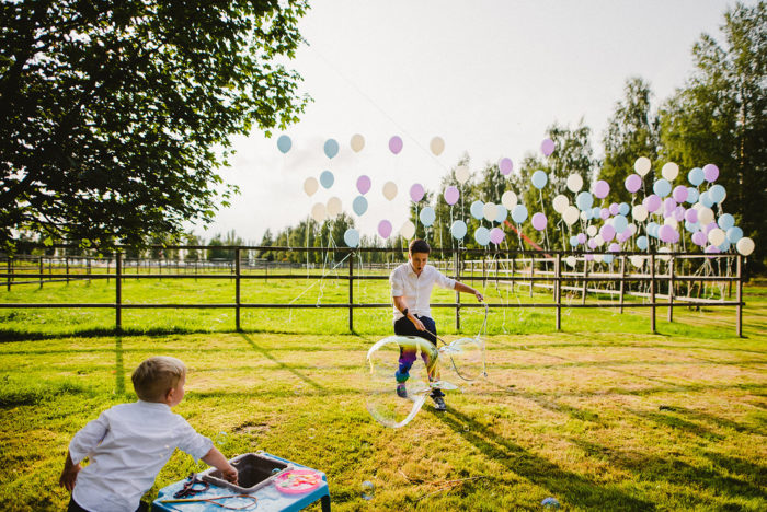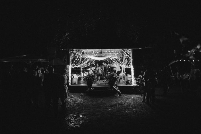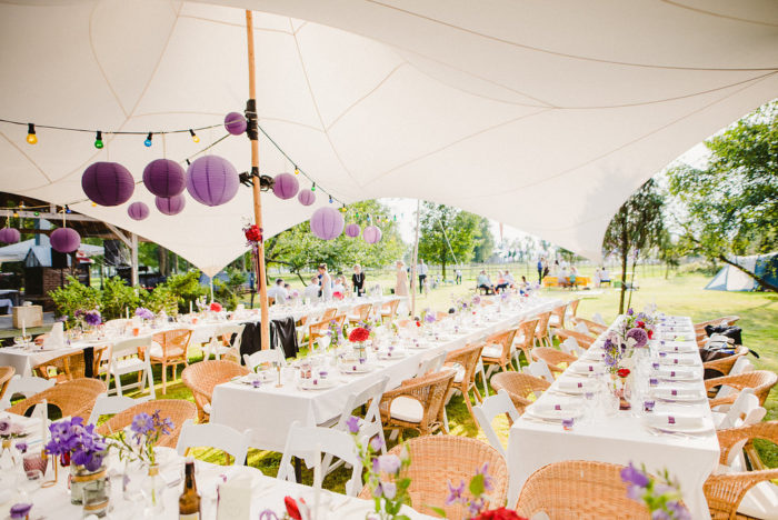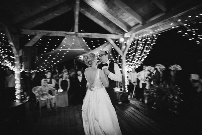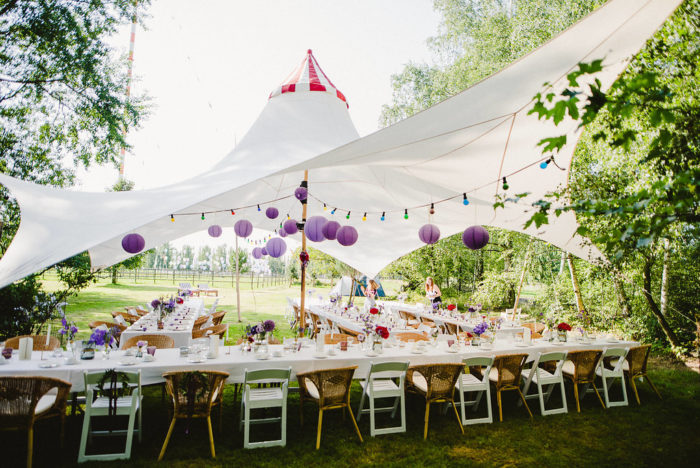 Der Regen wollte nicht aufhören, an diesem letzten Samstag im August. Die feuchte Kälte breitete sich überall aus. Aber die Feier sollte trotzdem unter dem stimmungsvollen Kuppelzelt auf der Weide stattfinden. Plan B gibt es nicht, das war für Sina und Karsten immer klar gewesen. Und so riss die Wolkendecke tatsächlich vor dem Eintreffen der Gäste auf und mit einem Mal war es der schönste Sommertag. Als wäre es nie anders gewesen, als würde der Himmel wissen, wann genug ist. Die Stimmung war ausgelassen, das riesige Gelände wurde von allen erkundet, ein paar Gäste schlugen sogar ihr Zelt auf, um dort die Nacht zu verbringen. Und als der Tag zum Abend wurde, feierten alle in dem von Lichterketten stimmungsvoll eingerahmten Pavillon.