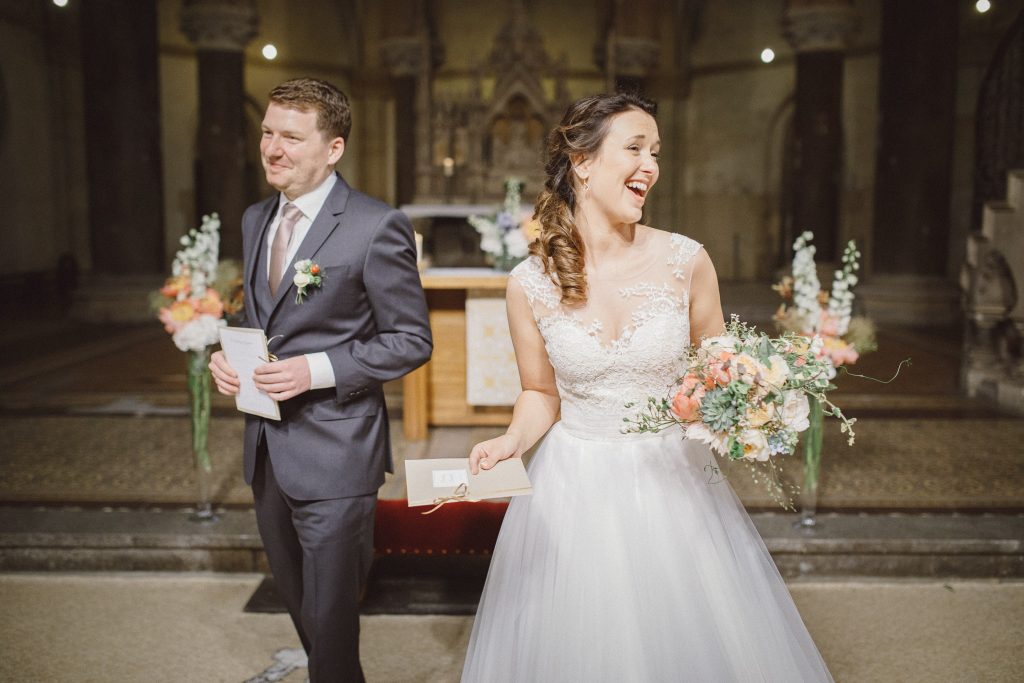 Leicht und zauberhaft und elegant versprühten diese beiden eine unglaubliche Energie, die sich überall widerspiegelte: In der traumhaften kirchlichen Trauung, aber auch in der Location mitten in der Leipziger Innenstadt, die wie gemacht für sie schien. Ein wundervoll lockerer Nachmittag wurde im Innenhof verbracht, es wurde gelacht, geschlemmt und auf den Loungemöbeln entspannt. Modern und urban, in Kupfer- und Pfirsichtönen gehalten wurde zum Abend ein elegantes, auf jeden Gast abgestimmtes Menü auf die Tische gebracht bevor es zur rauschenden Party im Kaminkeller ging.